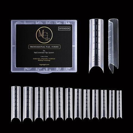The Dual Forms are designed for nail extension with Structure Gel, Base Gel, Hard Gel, or Extra Hard Rubber Base. Their special cut allows the extension of even the most complicated, short, or bitten nails with precision.